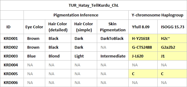 تحمل عينة تل كوردو رقم KRD003 سمتي العيون الزرقاء والشعر الأشقر