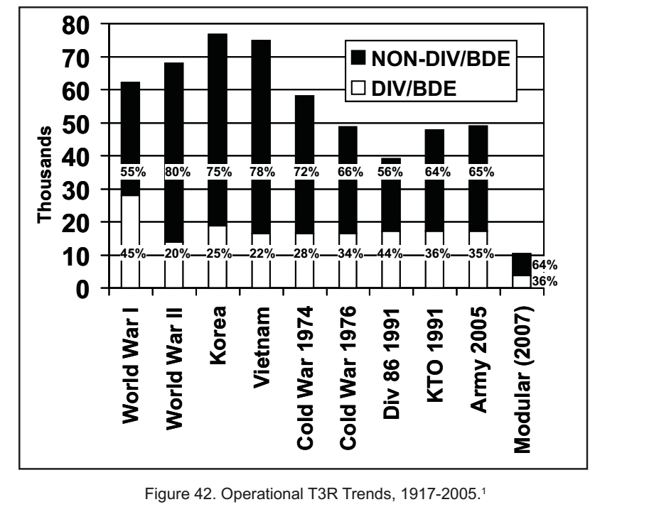 ۱- نسبت متداول نیروی رزمی به پشتیبانی برای یگانهای به اصطلاح سخت بین ۲ به ۱ تا ۳ به ۱ می تواند متغیر باشد. این به معناست که از یک تیپ سه هزارنفری بعد از حذف ستاد و پشتیبانی و نقلیه و بهداری و ... برای فرمانده کمتر از ۱۵۰۰ نفر نیروی رزمی باقی می ماند.