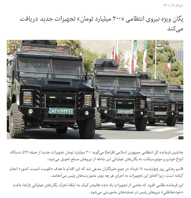 ۳- آنچه درباره این نیروهای یگانهای سخت بایداضافه کرد این است که ماموریت ضدشورش و حضور در خیابان چه به جهت جسمی و چه به جهت روانی توانمندی زیادی می طلبد. بعلاوه به دلیل ماهیت «تن به تن» درگیری احتیاج به آموزش