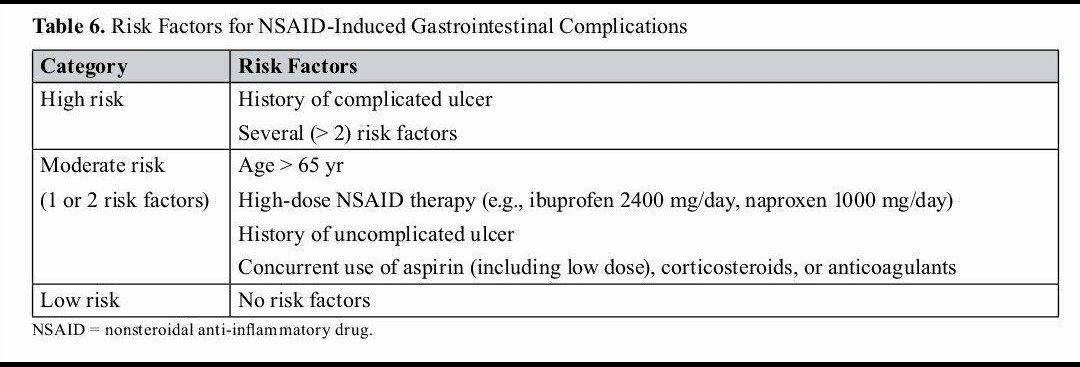 قبل العلاج بالأدوية المسكنة من نوع NSAID، هناك عاملين مهمه تؤثر في اختيار النوع المناسب للعلاج او تجنب هذه المجموعة وهي