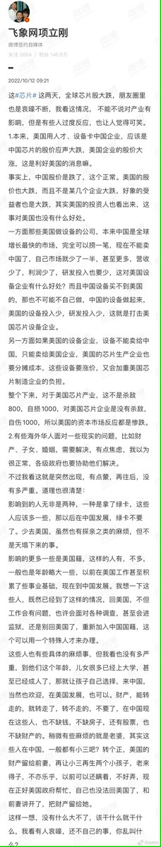 目前本人评估一下后续的情况。这种破坏力极强的政策一般不太可能全盘完全推行下去,因为中美此前在半导体上的合作非常的深入,但凡推行,大部分美国半导体、芯片相关大公司的股票都会急剧下滑,直到产业链完全转移。我认为硅谷科技公司会很快组织游说,搞出一些变通措施。会有个几年的缓冲期。/3