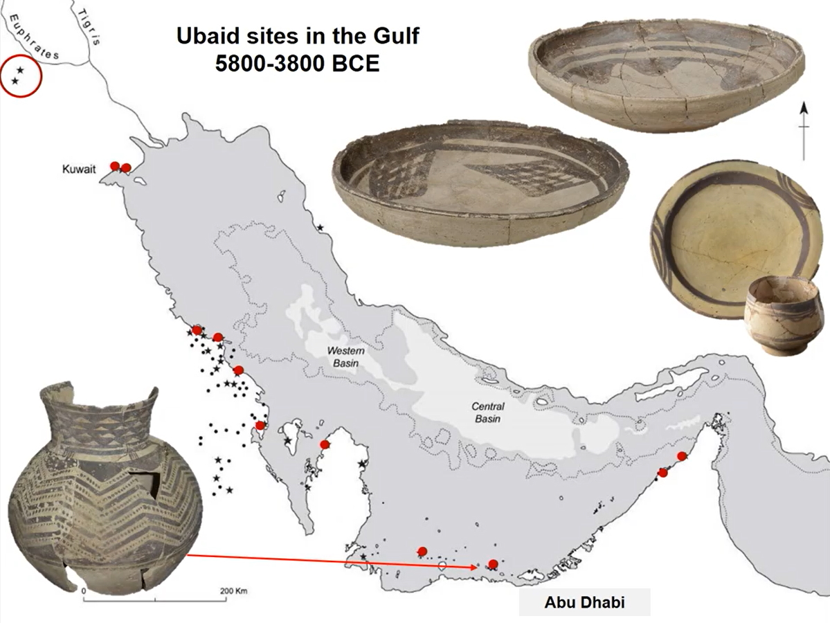مواقع ثقافة العُبيد النيوليثية بسواحل الخليج العربي بين 7800 - 5800 سنة مضت ليس مستبعدا أن تكون ثقافة تل العُبيد هي الوريث المباشر لساكنة حوض الخليج بعد نزوحها نتيجة غمر أراضيها بمياه البحر بين 12.000 - 8000 سنة مضت