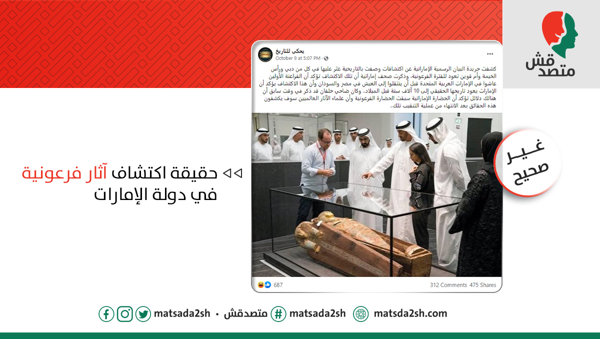 بوست منتشر بشكل كبير، مع عدة صورة يظهر فيها آثار فرعونية، بيقول: "كشفت جريدة البيان الرسمية الإماراتية عن اكتشافات وصفت بالتاريخية عثر عليها في كل من دبي ورأس الخيمة وأم قوين تعود للفترة الفرعونية،