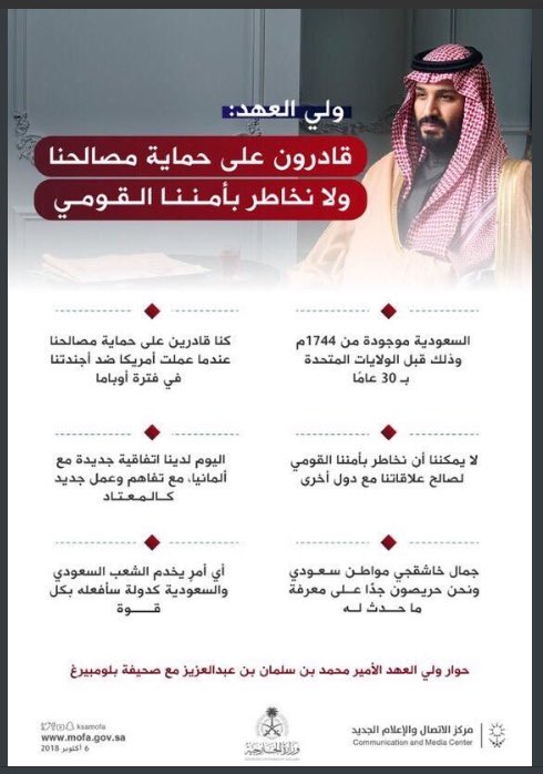 أما بالنسبة للعقوبات وتجميد الأموال والاستثمارات فضررها يتجاوز مستوى "الحكومة" ويهدد "الدولة" ككيان ومؤسسات…هذا راح يرتد داخلياً ضد الحكومة بأسرع من ارتداده على المصالح السعودية