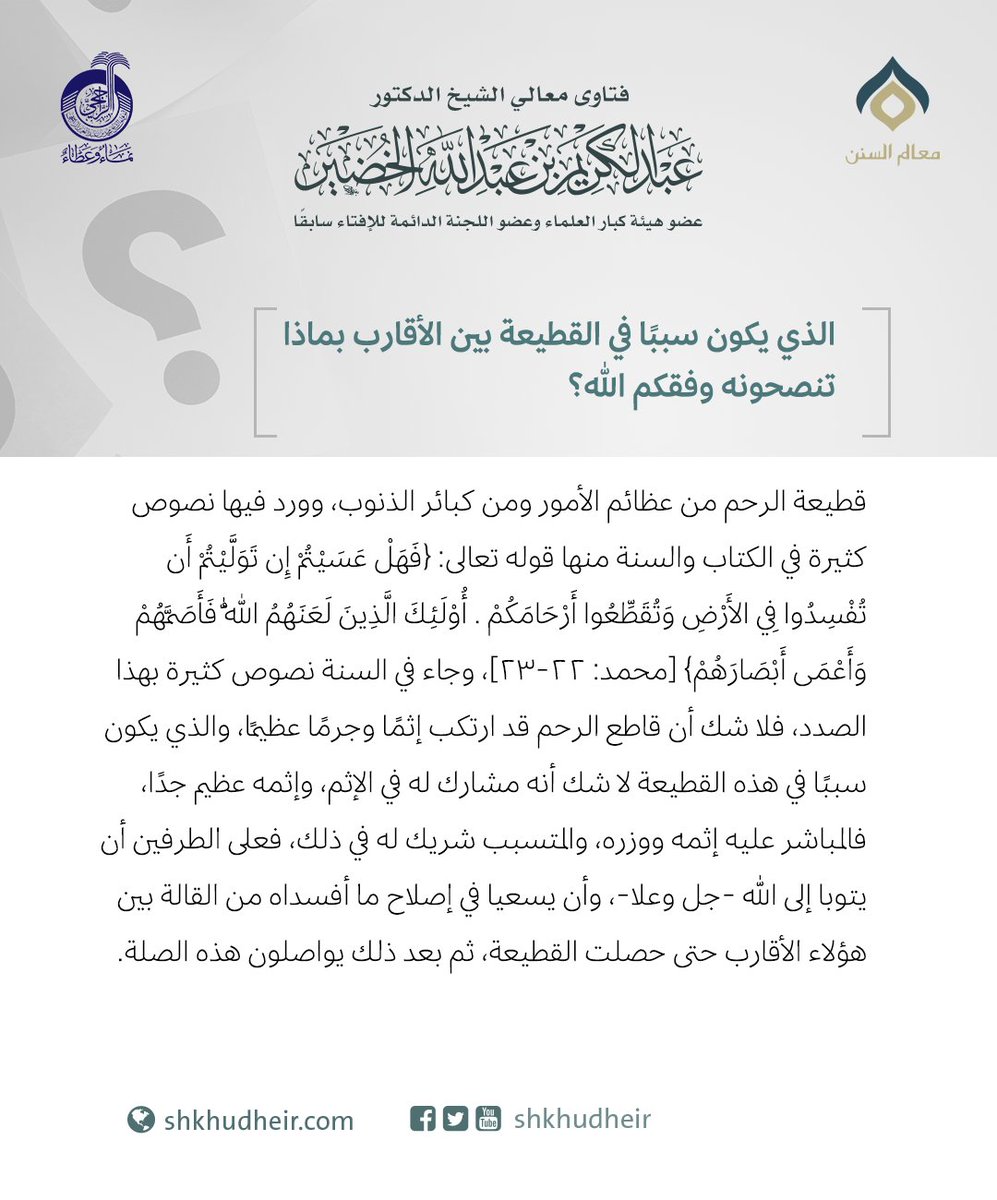 الذي يكون سببًا في القطيعة بين الأقارب بماذا تنصحونه وفقكم الله؟