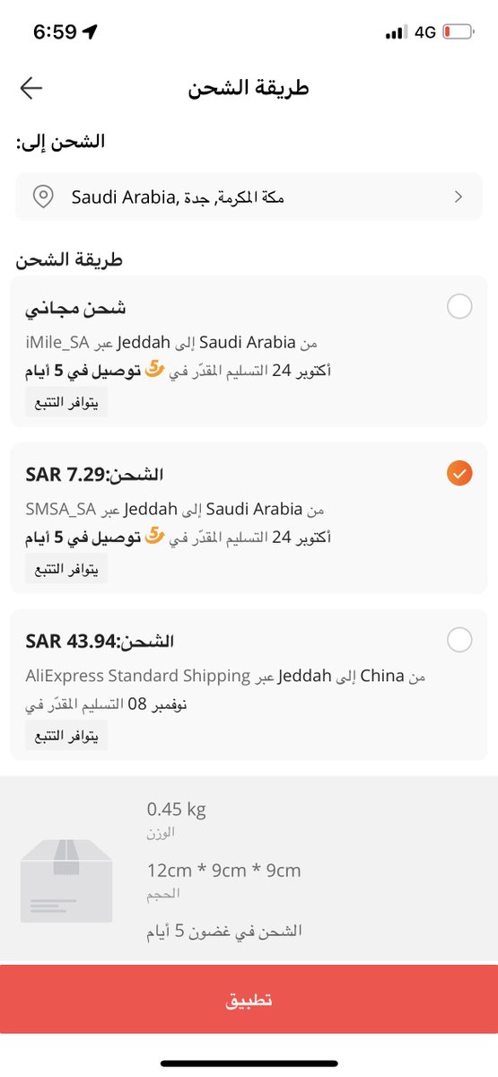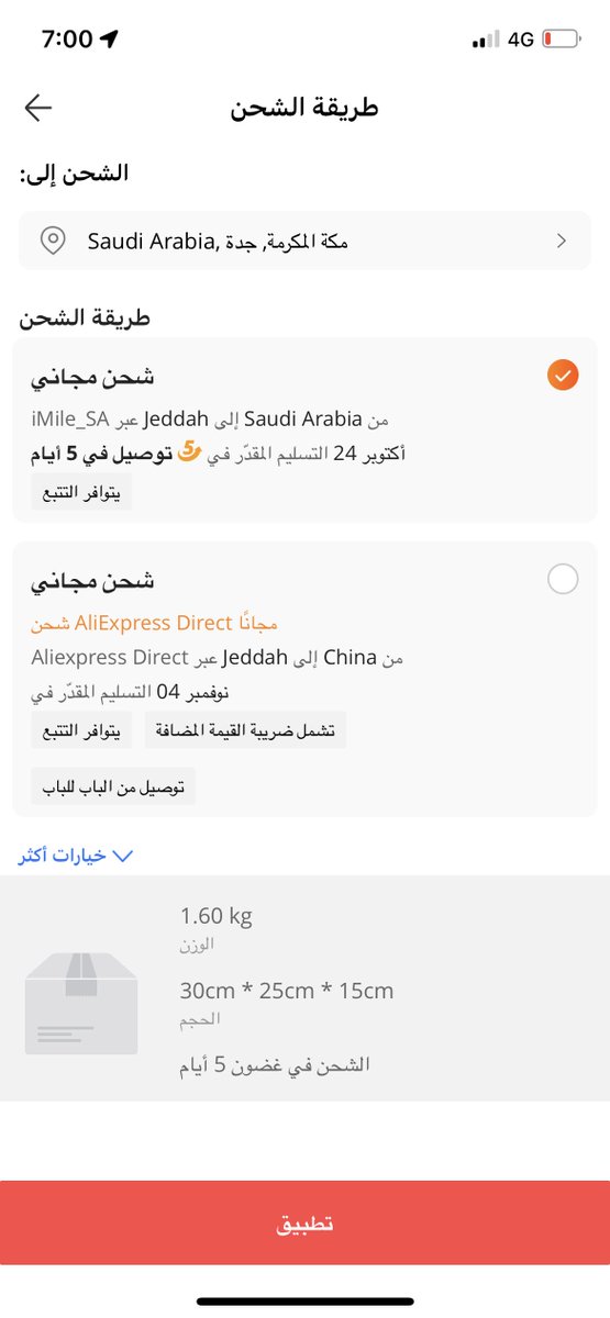 تبغى تطلب من علي اكسبرس والتوصيل من المستودع السعودي ؟