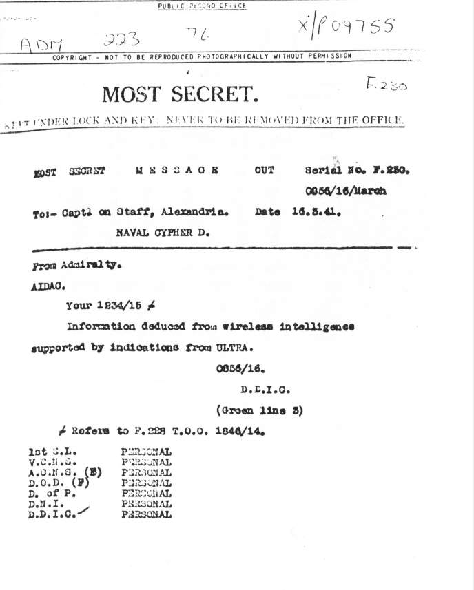 Tutto documentato nella corrispondenza intercorsa nel marzo del 1941 tra l’Ammiragliato, il Foreign Office (ufficio degli esteri) e Churchill.