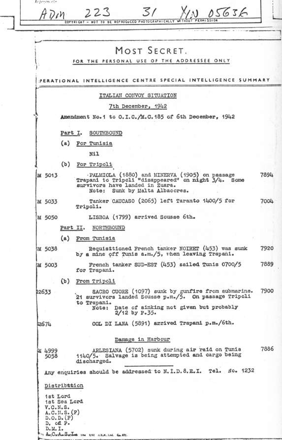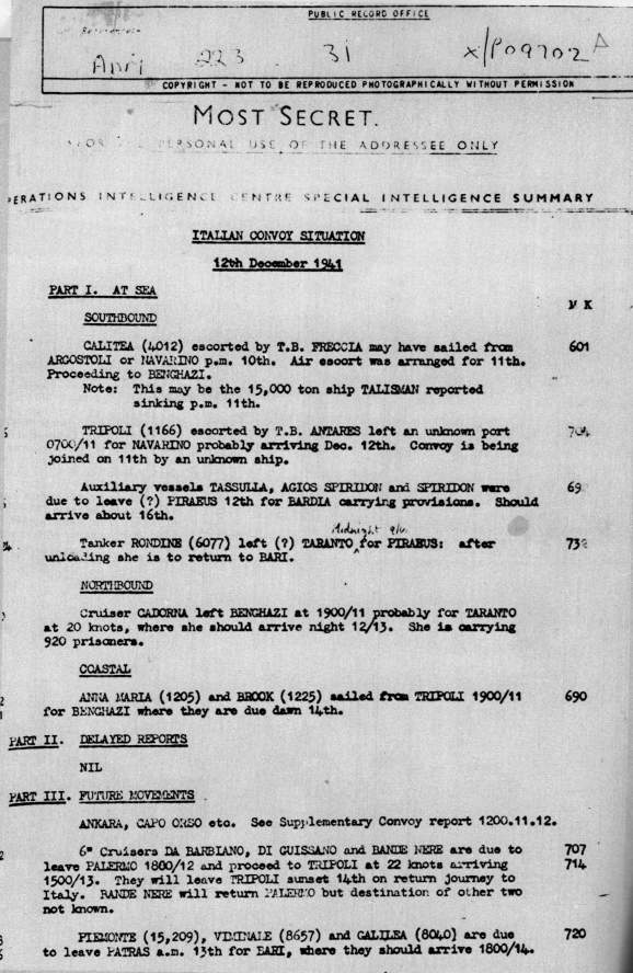 Quelli della Marina tedesca solo nel marzo del 1941. Quelli dell’esercito tedesco solo nel settembre 1941. Durante il primo anno di attività ULTRA servì solo in due casi.