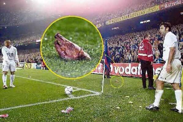 ابرز حادثه كانت بالكلاسيكو من نصيب فيغو بعد رميه من جمهور برشلونة براس خنزىر
