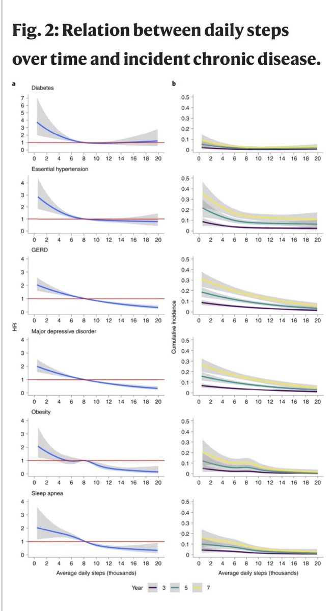 اذا كان العدد اقل من ٨ الاف خطوة فقد تكون معرّض بشكل زائد للاصابة بالامراض التالية: