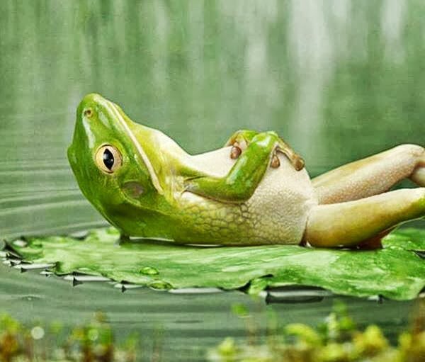وكان الرجل يجلس في الضفادع إلى ذقنه