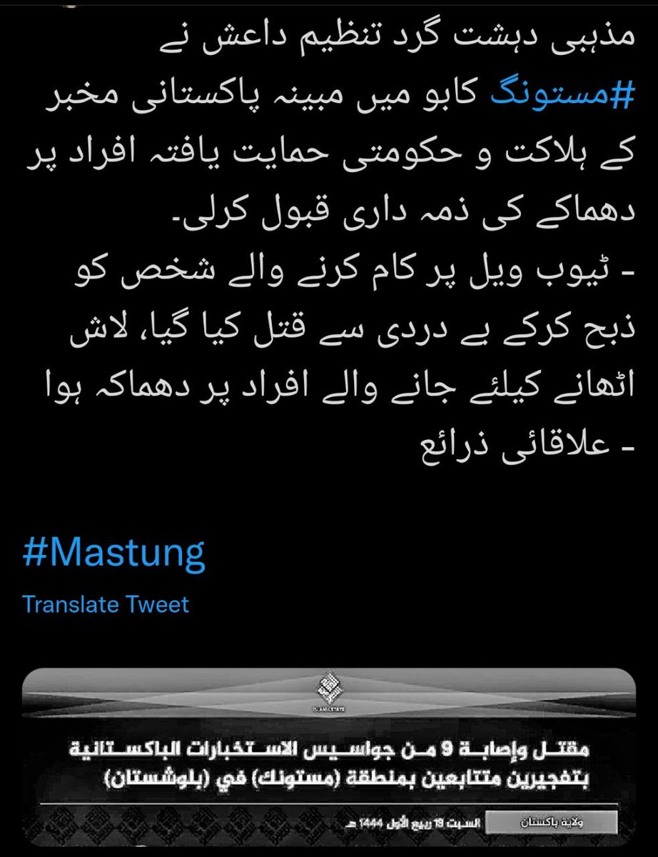 دو روز قبل 14 اکتوبر کو بلوچستان کے ضلع مستونگ کے علاقے کابو میں بنگلزئی قبیلے کے لوگوں پر دھشتگردوں نے بم حملہ کیا جس میں اس قبیلے کے 3.