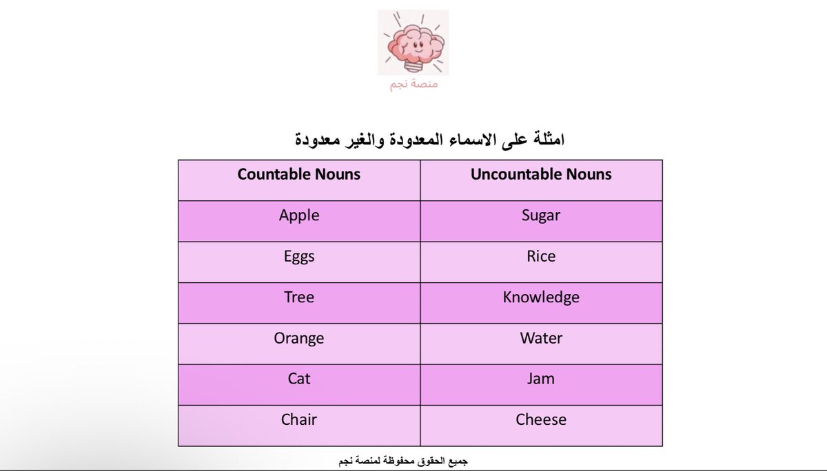 عندنا كلمات مساعده نستخدمها قبل الاسماء وتحدد لنا اذا الاسم معدود او غير معدود: ⬇️⬇️