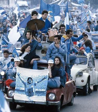 بعد الفوز ببطولة الدوري ذهبت جماهير نابولي الى المقابر لتعلق اللافتات وتسطر العبارات على القبور لتكون الرسالة إلى عالم الأموات: اه لو تعلمون ما فاتكم !!
