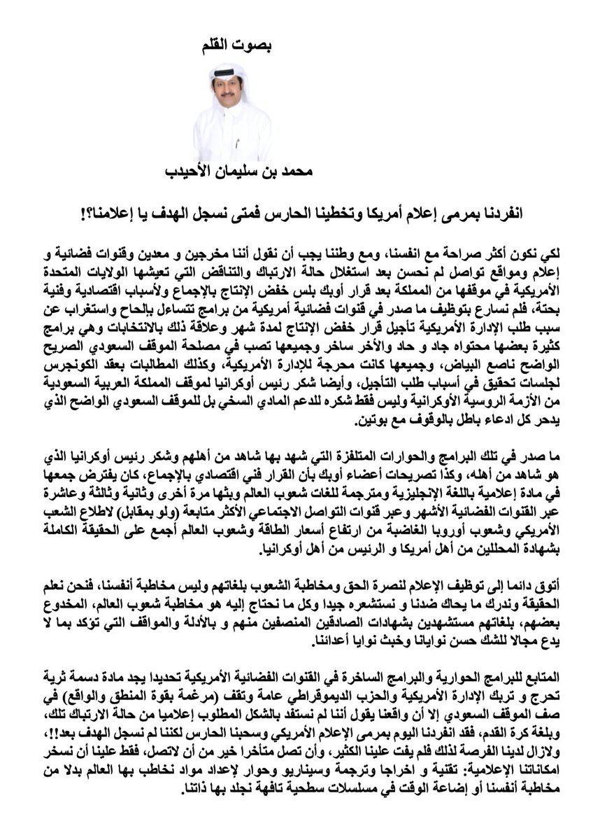 انفردنا بمرمى إعلام أمريكا وتخطينا الحارس فمتى نسجل الهدف يا إعلامنا؟!