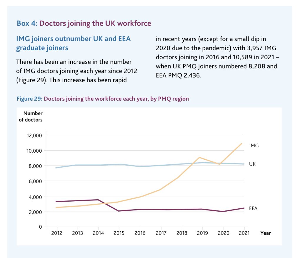 و الاحصائية المبشرة هي تضاعف عدد الIMG اللي التحقوا بالنظام التدريبي Training و ارتفاعه من حوالي ٧ الاف طبيب ل١٣ الف طبيب غير بريطاني/غير اوروبي قدر يدخل نظام التدريب