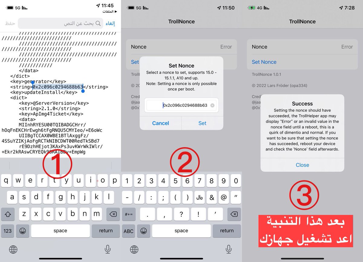 - اجهزة A12-A15 اذا إصدار الجهاز من 15.2 وما فوق لا يوجد حاليا طريقة لتعيين رقم Nonce ولا تنفع لك هذي الطريقة)