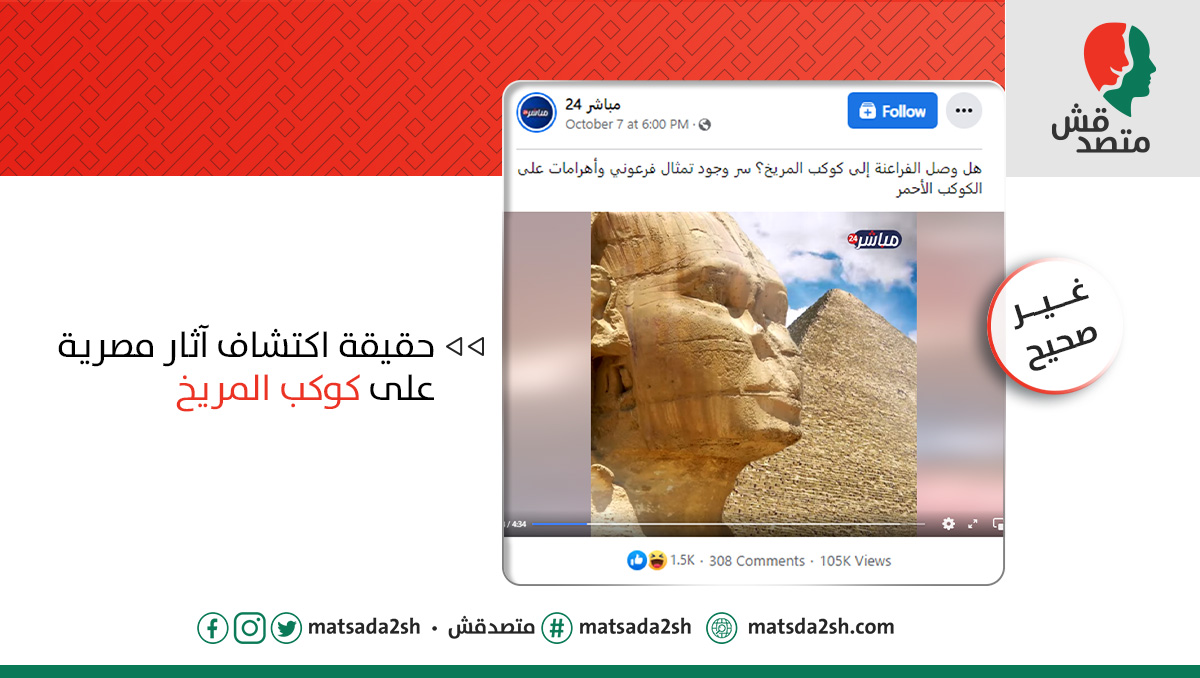 - كمان وزير الآثار الأسبق، دكتور زاهي حواس، سبق ونفى العثور على آثار مصرية على سطح المريخ وقال إن "الحديث عن العثور على آثار مصرية على المريخ خزعبلات، وإن الشخص الذي زعم اكتشاف تابوت فرعوني على سطح المريخ هو شخص موتور". ✅✅