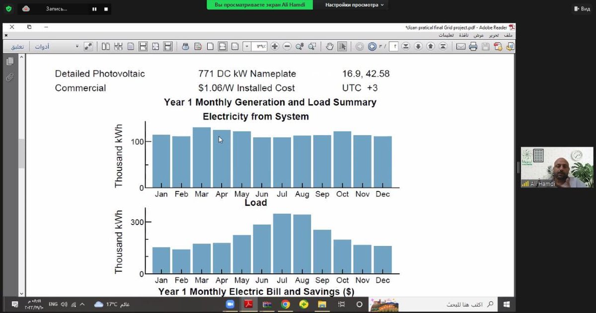 ✅ تضمنت الدورة العديد من التدريبات والواجبات العملية و المواد التعليمية المصاحبة بالإضافة لإعداد المشروع النهائي الذي يعده ويناقشه كل متدرب والذي يشمل نظام متصل بالشبكة ونظام منفصل عنها باستخدام برنامجي SAM وpvsyst وذلك لضمان استيعاب المتدرب لجميع محاور البرنامج بصورة عملية.
