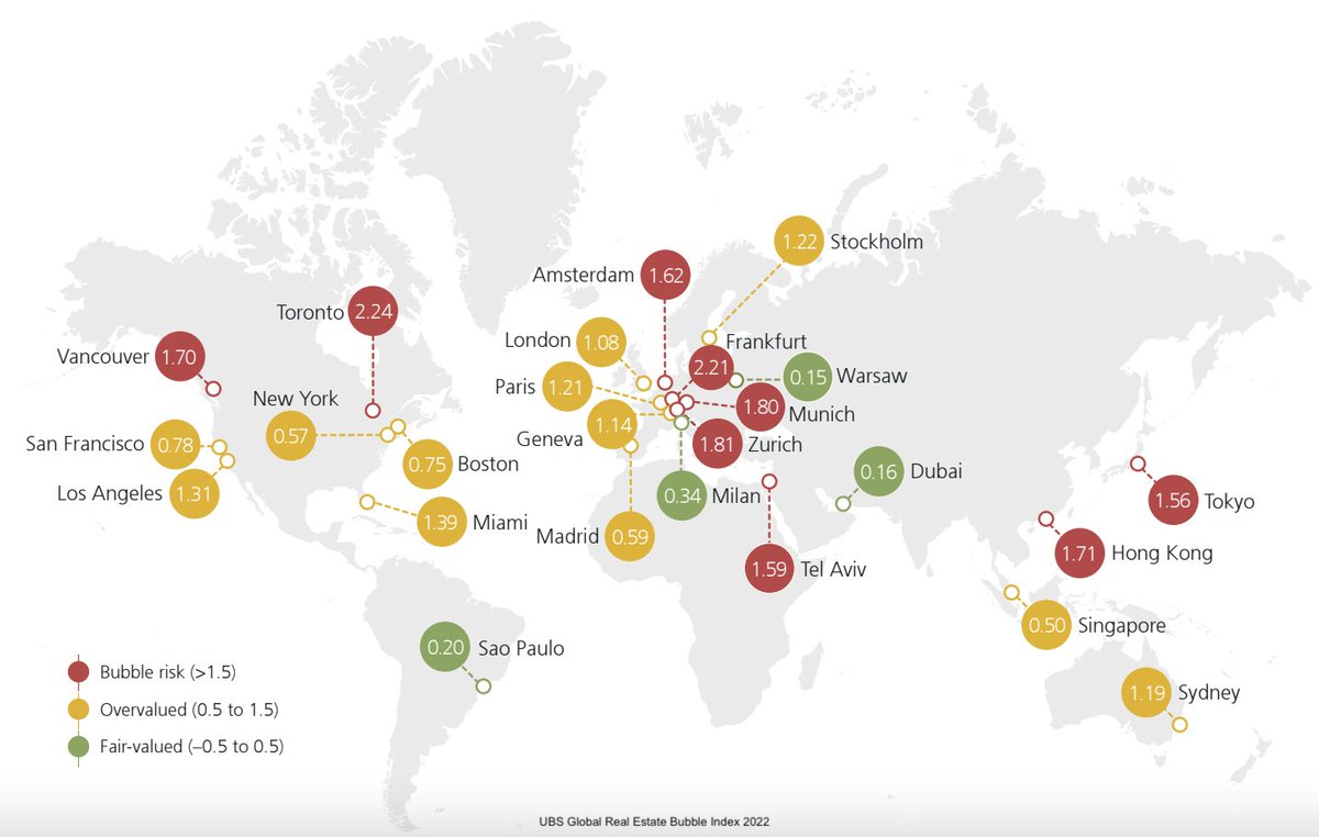 وفقاً لمؤشر فقاعة العقارات العالمي الصادر عن بنك UBS لعام 2022 والذي يحلل أسعار العقارات السكنية لـ25 مدينة من كبريات المدن في العالم.