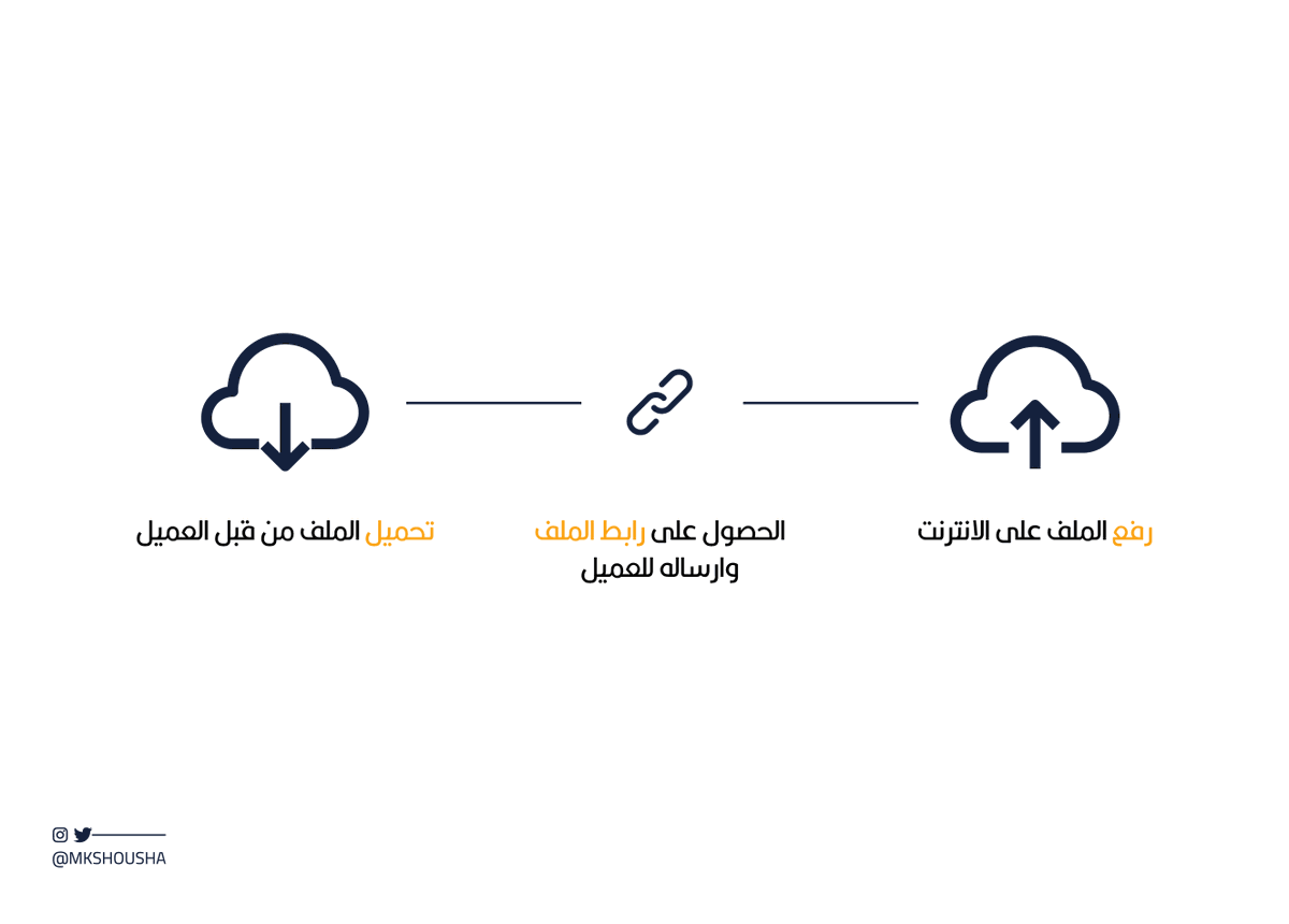 بعد ضغط الملف بنرفعه على احد مواقع مشاركة الملفات وبنرسل الرابط للعميل عشان يقدر يحمله