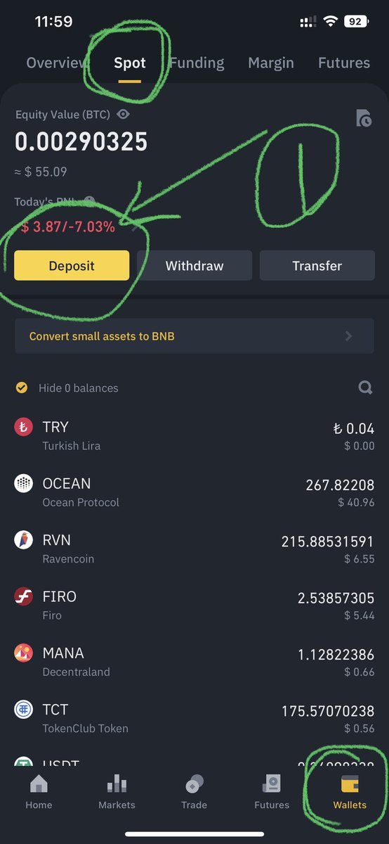 ندخل منصة بينانس نروح الى المحفظة ونضغط ايداع