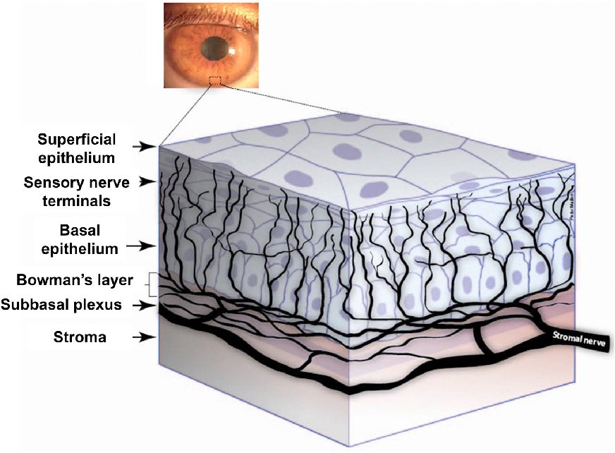 خدش القرنية السطحي وان كان بسيط فالالم فيه شديد جداً لان سطح القرنية مليئ بالخلايا العصبية الحساسة جداً للالم