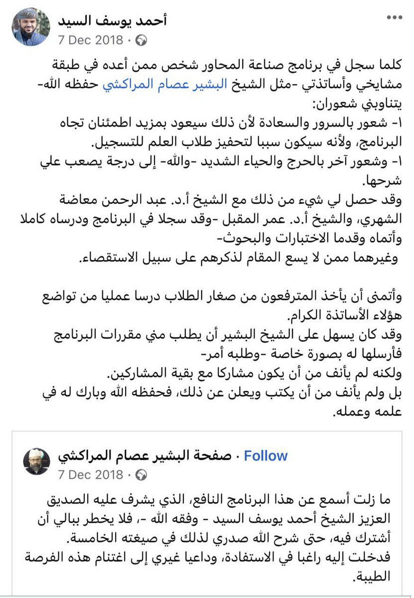 ٤-لم يتوقف المراكشي عن إحالة الشباب لمنظري الإرهاب، وتفخيم حالهم، وتزيينهم في أعينهم👇