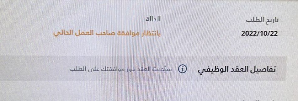 والآن لديه طلب نقل خدمة مدته 15 يوم واذا لم يكمل اجراءات النقل ستتحول حالته الى متغيب عن العمل .