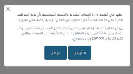وسيظهر التنبيه لصاحب العمل الجديد أثناء إنشاء عقد العمل