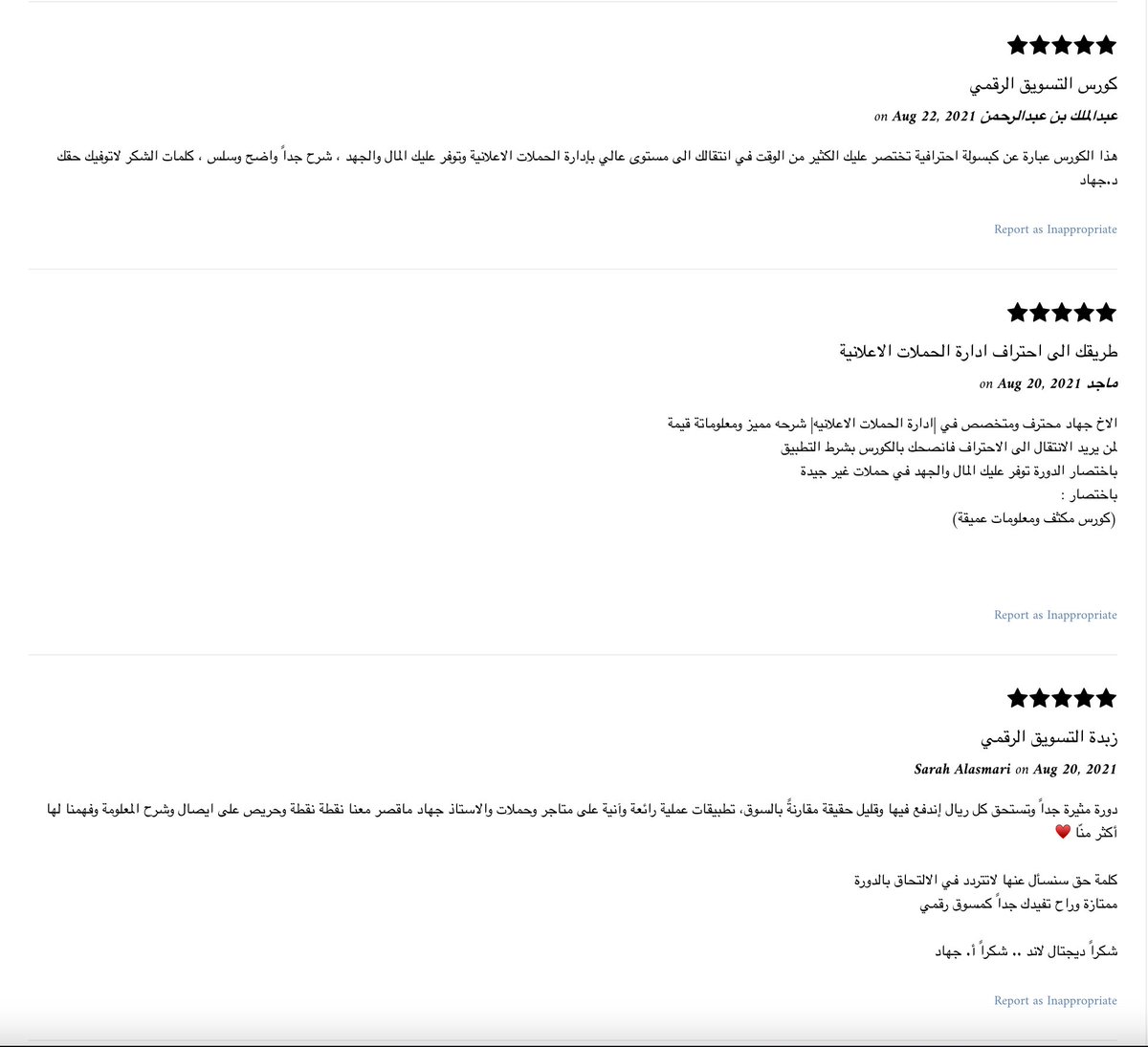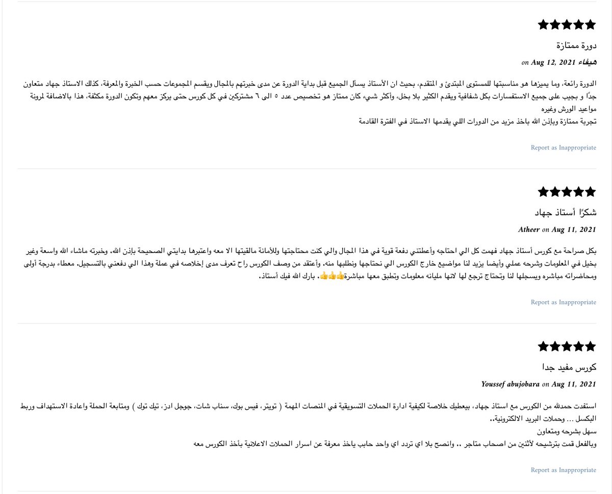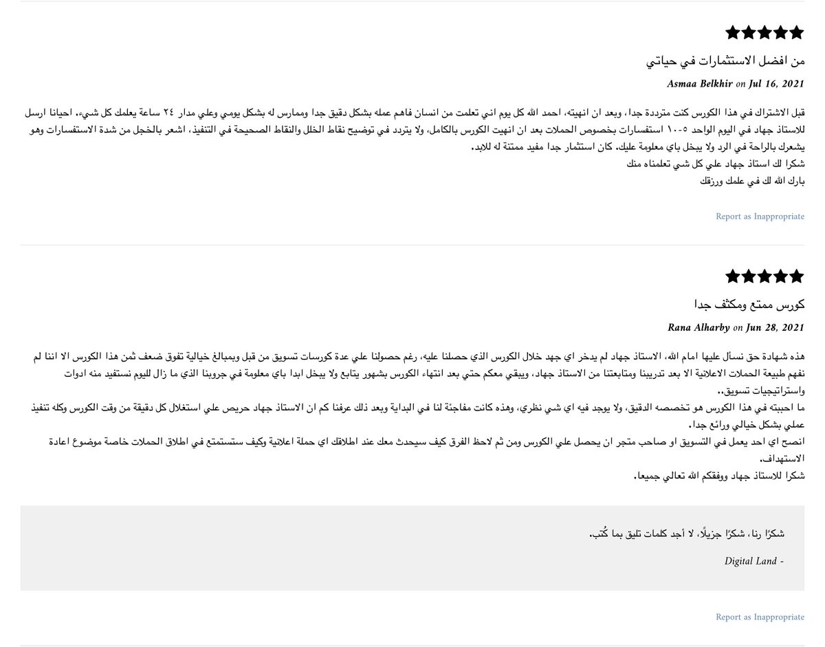 8. مُراجعة خاصة لحملات المُشتركين في الكورس، وتقديم المُلاحظات والتحسينات بناء على المُحاضرات السابقة.