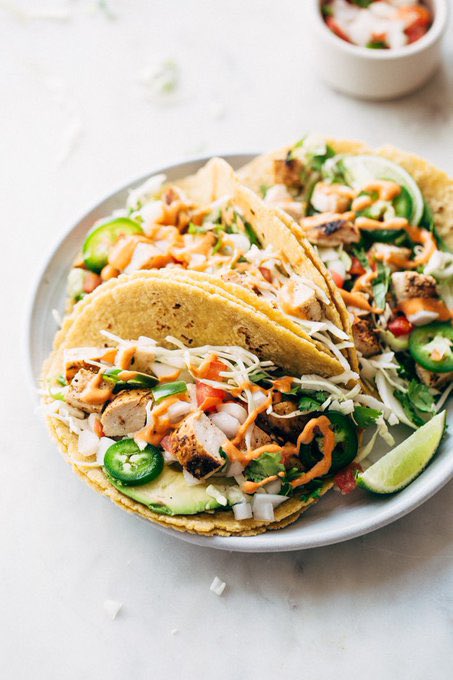 تاكو الدجاج المحمر بالذرة والافوكادو 🥑🌮 🌽