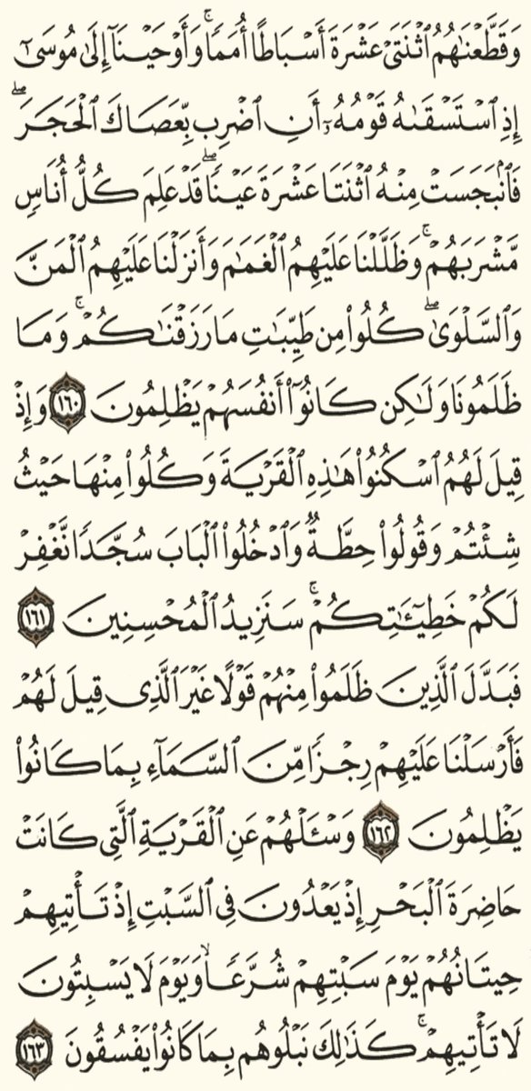 و بعد هذا الترتيب الاجتماعي و الديمغرافي و السكاني لهؤلاء القوم الذين كانوا يزيدون عن ستمائة ألف نسمة، اشتد بهم العطش، و اشتد الحر عليهم في صحراء سيناء و في التيه، فطلبوا من موسى عليه السلام و استسقوه، فأمره الله رأفة و رحمة و لطفا بهم أن يضرب حجرا فانفجرت منه اثنتا عشرة عينا =