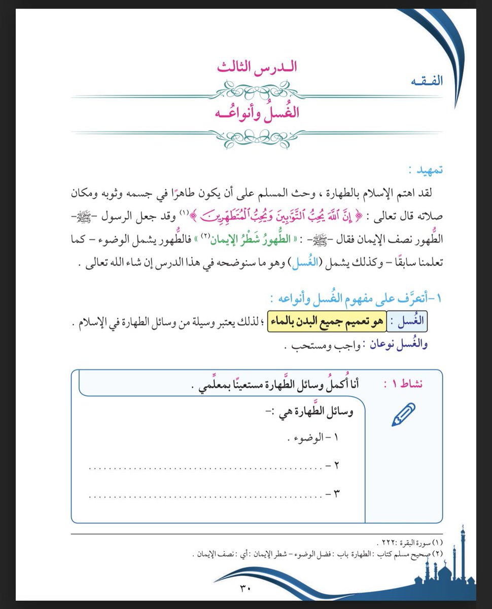 ٤٩ طالباً لا يعرف أنّ عليه الاغتسال بعد الجنابة.