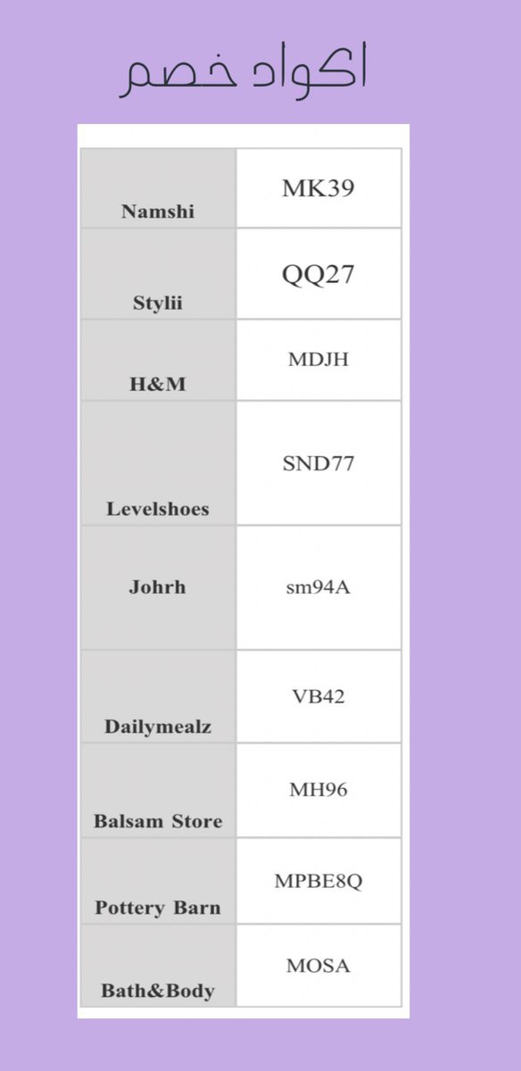 اكواد خصم احفظوها عندكم💜