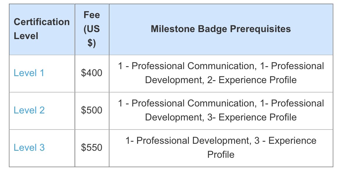 الحصول على هذه الشهادات يتطلب إنجاز مهام معينة وتعبئة نموذج للمهارات والخبرات. يتم تقييم هذه الملفات ودخول مقابلة.