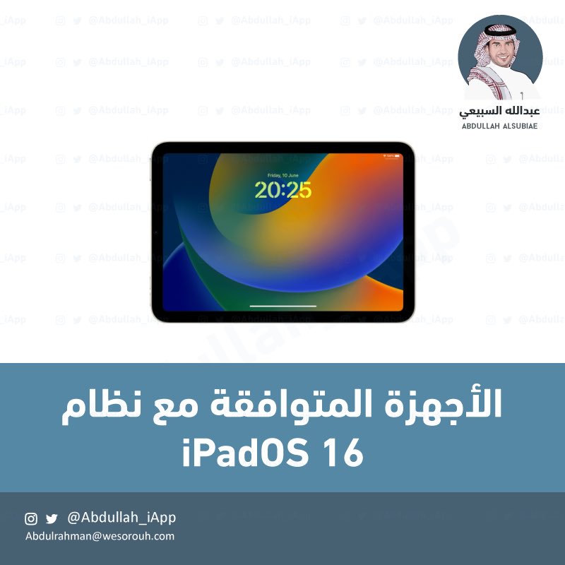 ⏺️ الاجهزة المتوافقه مع نظام الايباد الجديد iPadOS16 ⤵️