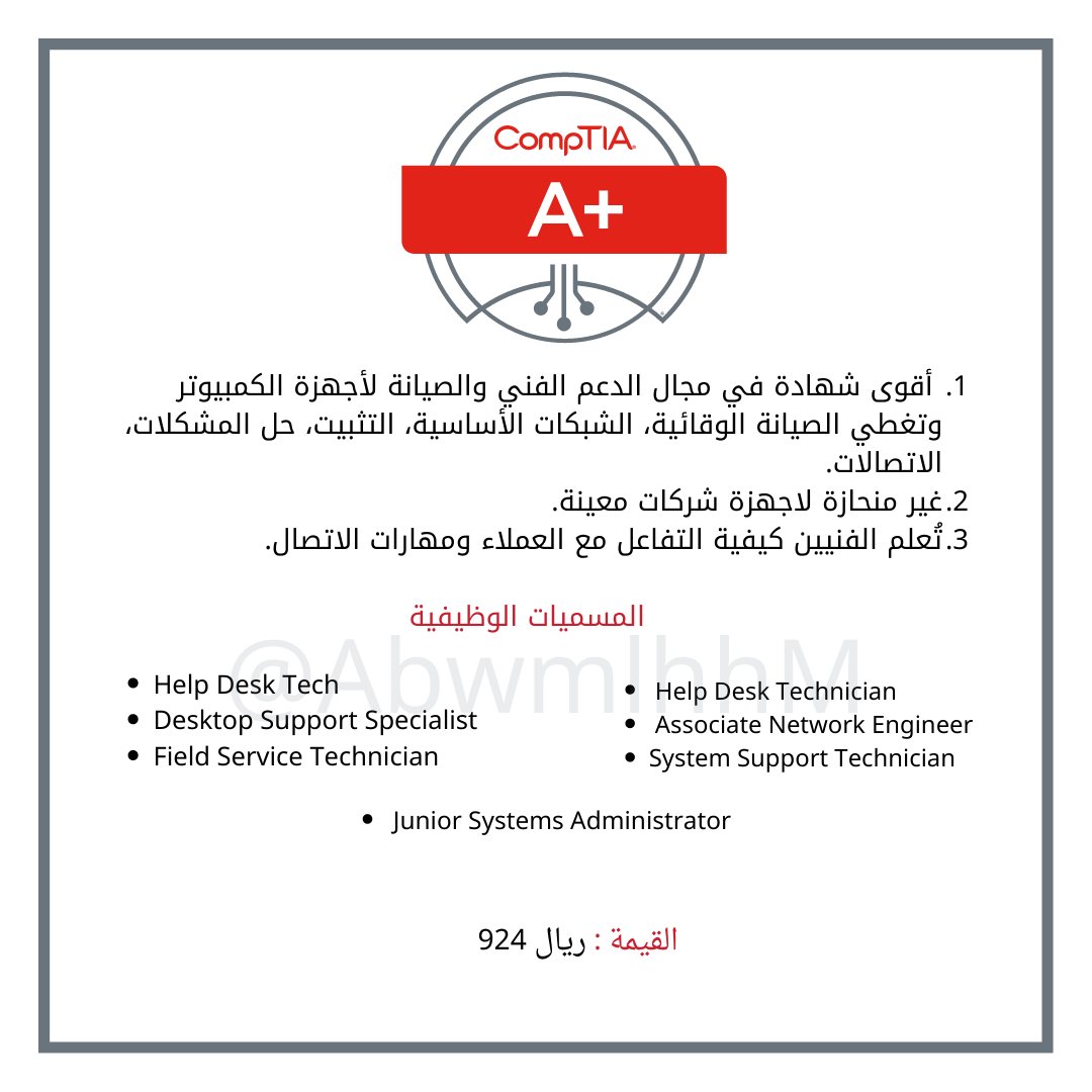 - الموقع الرسمي لمزيد من المعلومات comptia.org