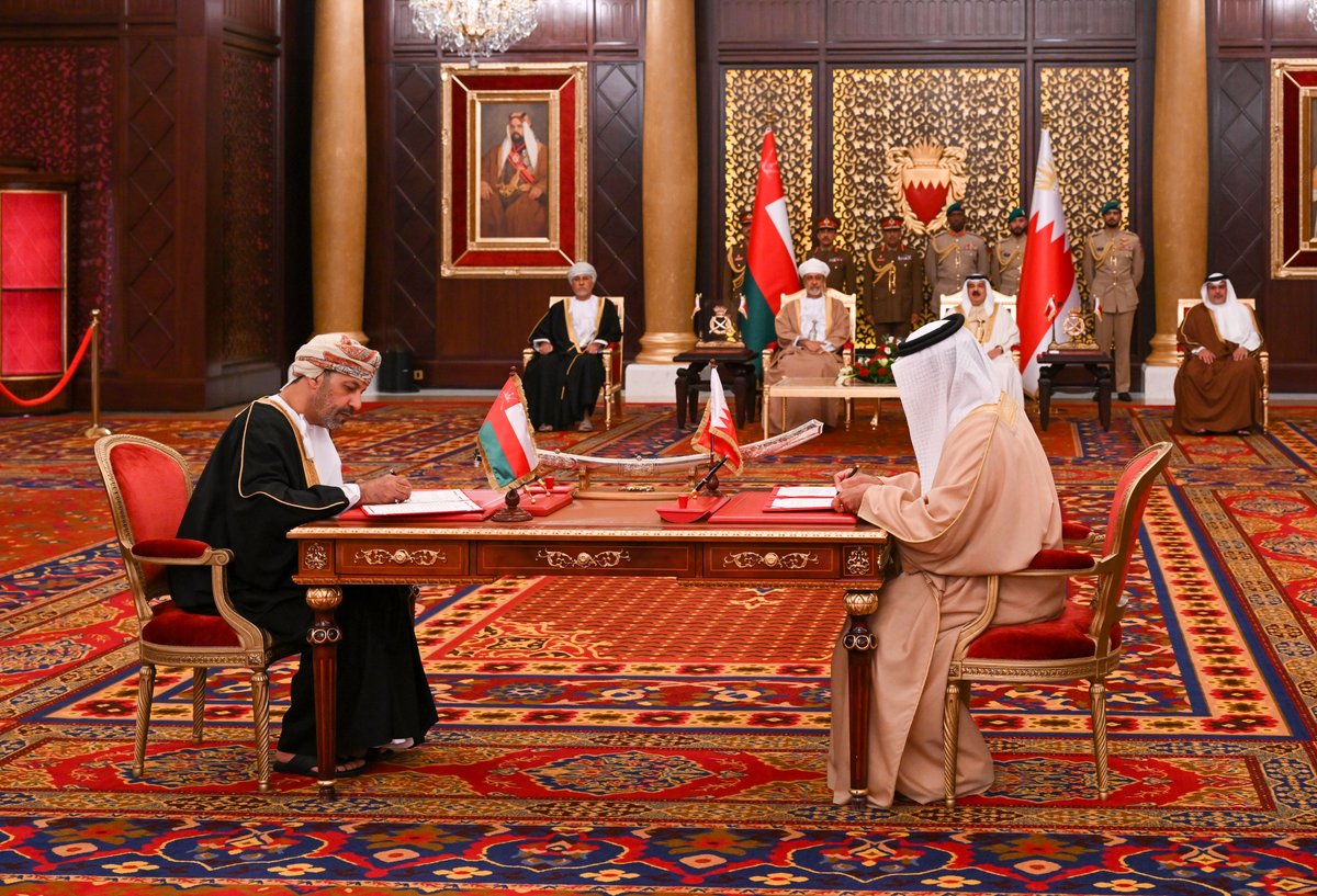 جلالةُ السُّلطان #هيثم_بن_طارق المعظم وأخوه جلالة الملك حمد بن عيسى آل خليفة ملك مملكة #البحرين /حفظهما الله ورعاهما/ يؤكدان على عزمهما على أهمية مواصلة تنمية التعاون المشترك في المجالات الاقتصادية والتجارية والاستثمارية على وجه الخصوص