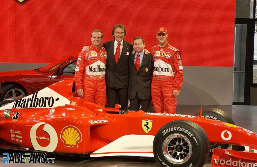 جلبت F2002 للفريق تسع ثنائيات بما ذلك خمسه على التوالي و سجل شوماخر 10 إنتصارات و اصبح عدد إنتصاراته 11 إنتصار مسجلا رقما قياسيا في ذلك الوقت و سجل زميله باريكيلو 4 إنتصارات