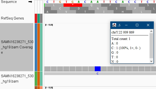 في الصورة الثانية نتيجة التحور الموجب على N عند الموقع الكروموزومي chrY:22,009,869