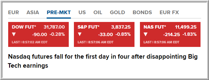 شركتى مايكروسوفت وجوجل قيمتهما السوقية 3.3تريليون دولار، ثاني وثالث اكبر الشركات في السوق الامريكي بعد ابل، تأثير الهبوط سيكون قوى على مؤشر نازداك لجلسة يوم الاربعاء، ويتوقع ان يهبطا بنازداك بما لا يقل عن 3% لوحدهما