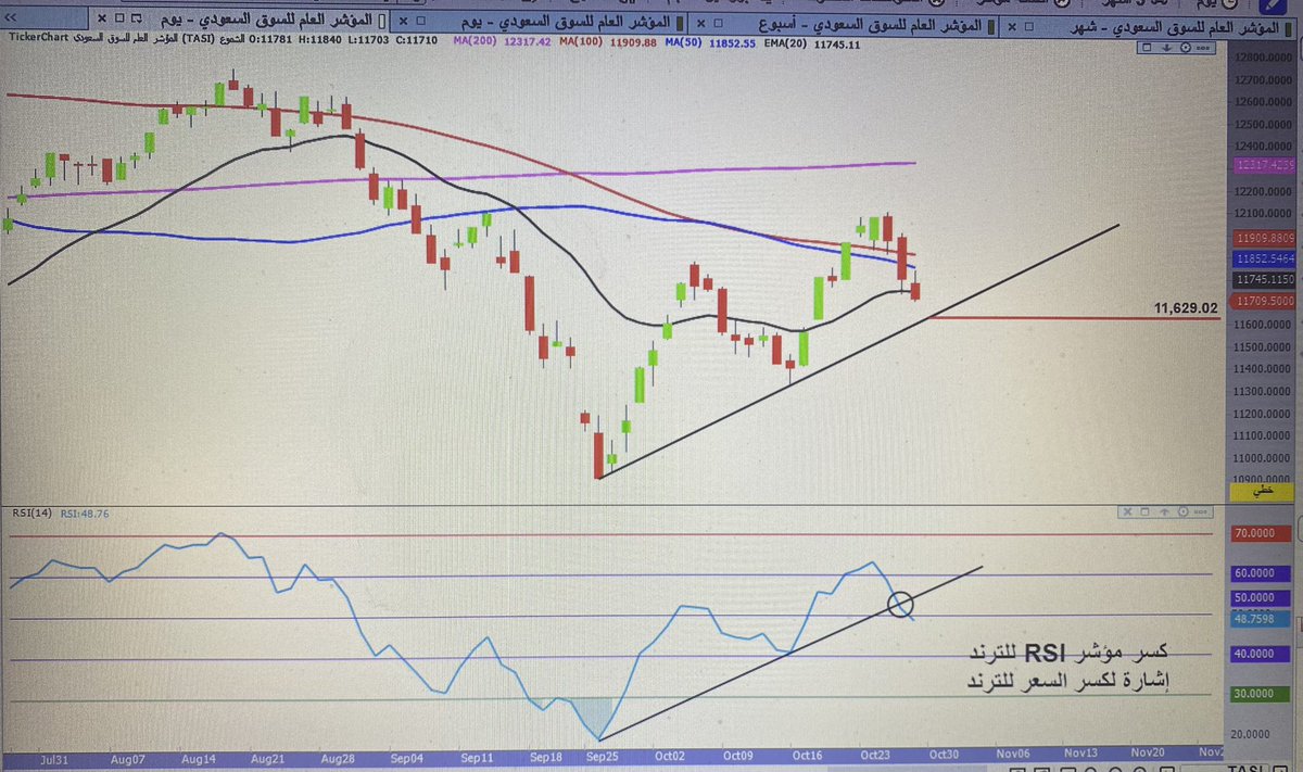 تأكدت سلبية شمعة 3 outside للمؤشر العام بكسر ١١٧٣٢ بإغلاق وأغلق المؤشر اليوم الخميس ١١٧٠٩ وستكون نقاطنا الأسبوع القادم ١١٦٧٠ ترند ربع سنوي / ١١٦٣٨ نسبة ٦١.٨٪ فيبو / ١١٦١٥ قمة آخر قاع RB