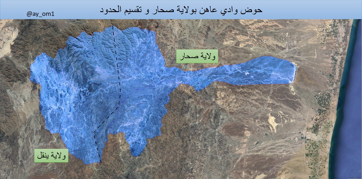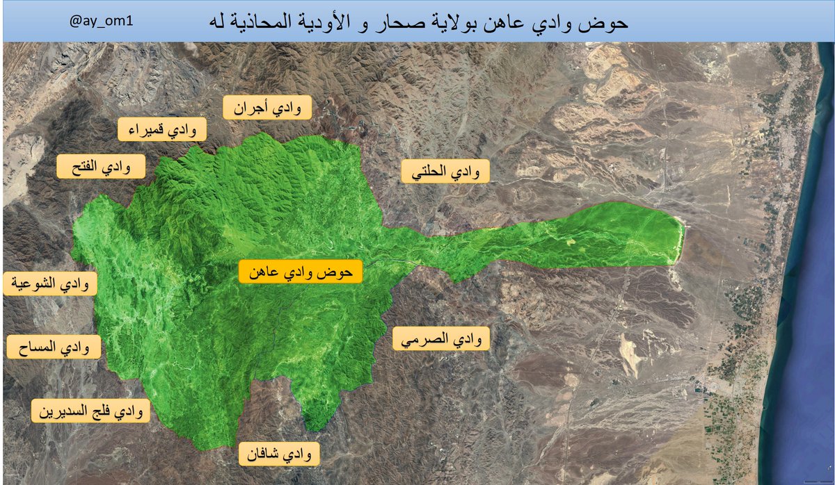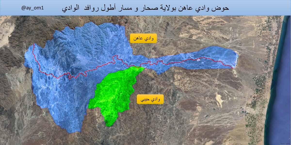 وادي عاهن بولاية صحار، هو أكبر أودية شمال الباطنة من حيث مساحة حوض الوادي و طول المسار، حيث تبلغ مساحته 875 كم مربع مقسمة على وادي عاهن 736كم مربع و وادي حيبي 139 كم مربع، و طول الوادي 115كم من وادي الحريم بولاية ينقل إلى المصب في بحر عُمان،، يتبع ⬇️