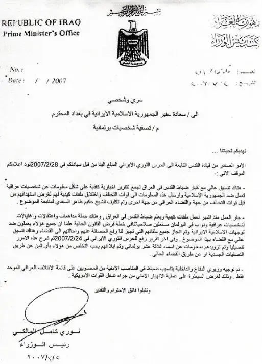 تواطؤ منقطع النظير قدمه المالكي للإيرانيين، حين منحهم قوائم بالعشرات لعلماء ذرة عراقيين وكذا ضباطًا وأكاديميين، فضلا عن برلمانيين عراقيين، ليغتال جميع هؤلاء في قضايا لم يحل لغزها إلا مؤخرًا عبر عديد من الوثائق المؤكدة