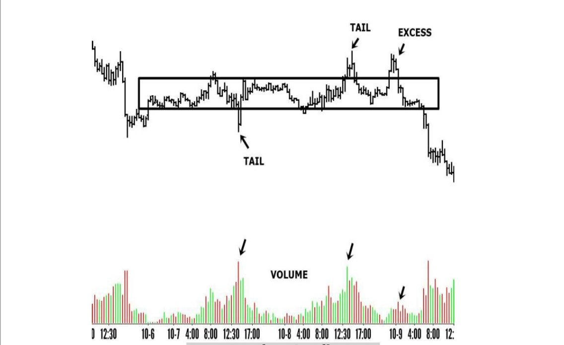 7/ في بعض الاحيان ينتقل السوق من حالة التوازن الي حالة عدم التوازن وينتج عن ذلك حركة قوية للسعر في احد الاتجاهين ويكون مناطق قيمة عادلة جديدة في نفس الاتجاه فترى السعر يخرج من منطقة قيمة ويدخل في منطقة قيمة جديدة وهكذا