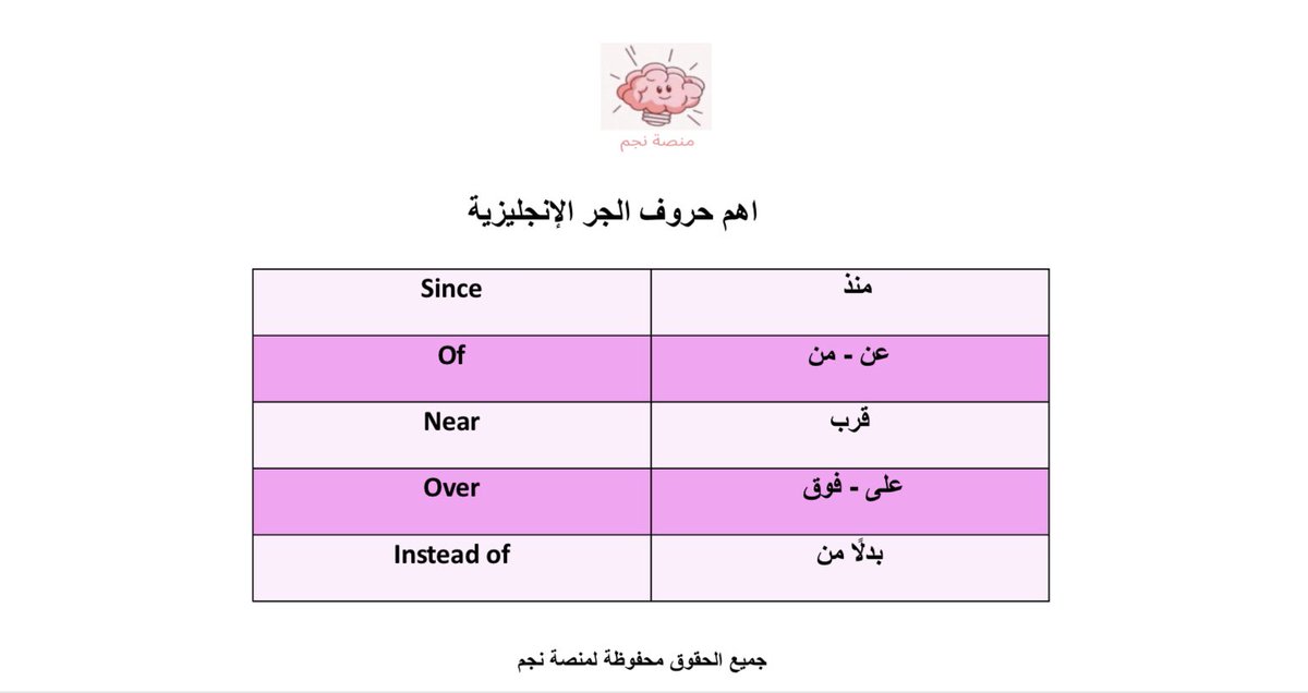 احرف الجر في اللغة الانجليزية هي كلمات معينة تربط كلمات الجملة ببعضها ولا تخلو اي جملة انجليزية من حروف الجر. في هذا الثريد بنعرض لكم اهم 5 احرف جر وتعلّمها بيساعدك في في تطوير لغتك واجتياز ستيب ان شاء الله✅⭐️