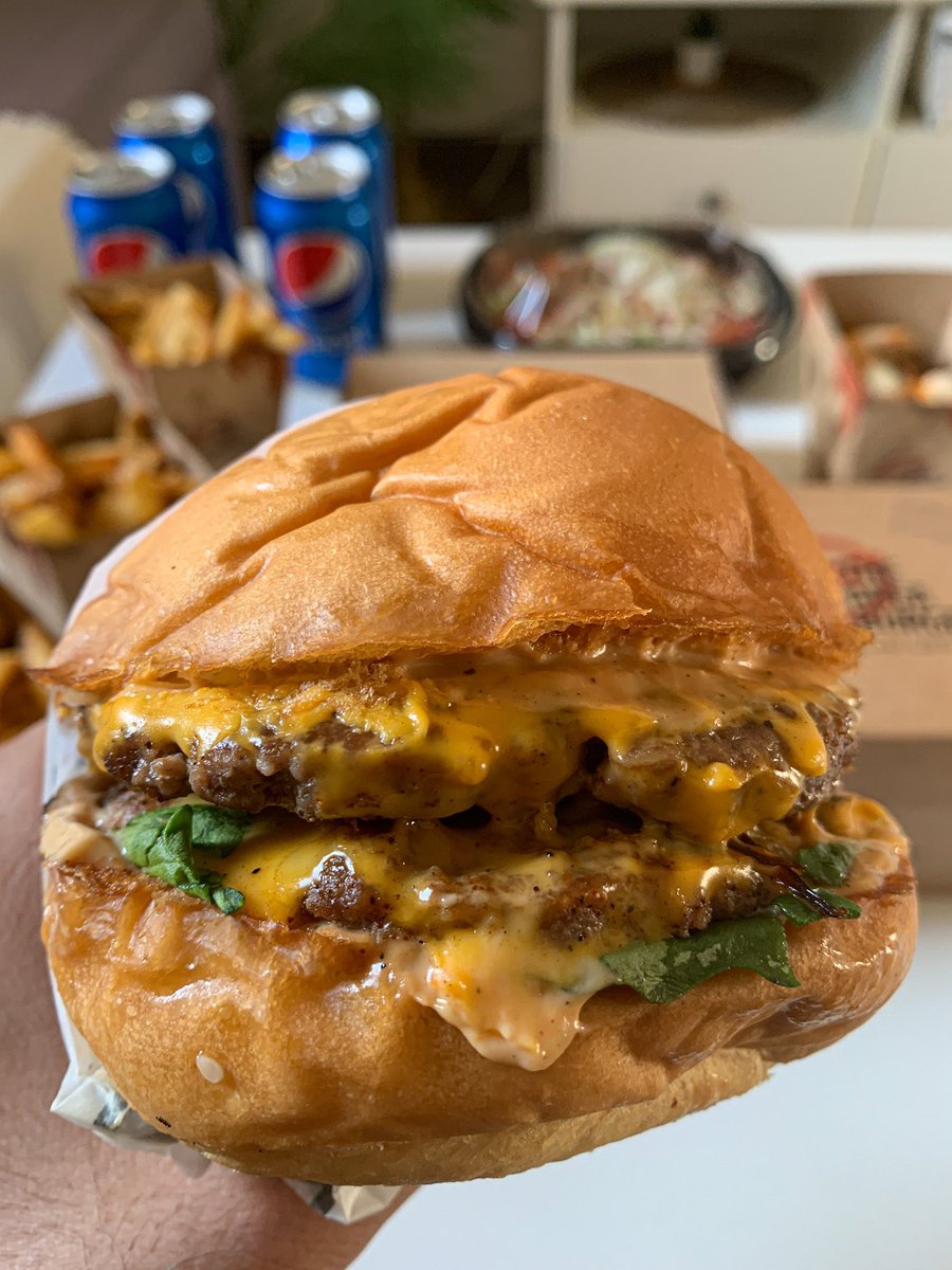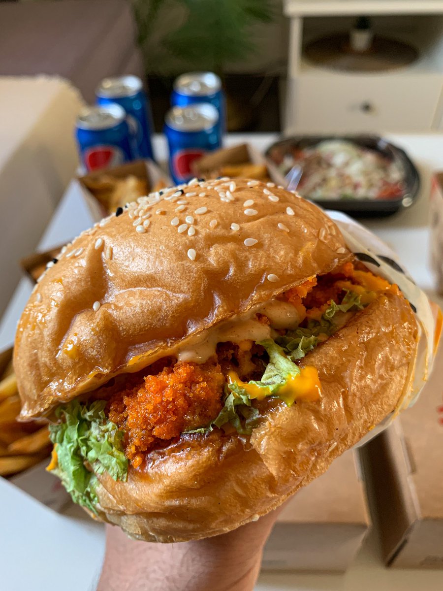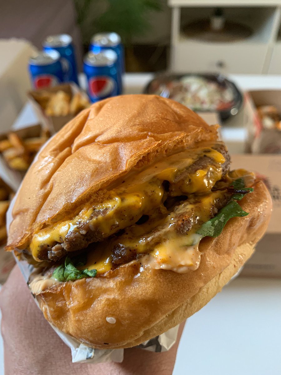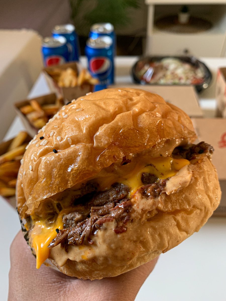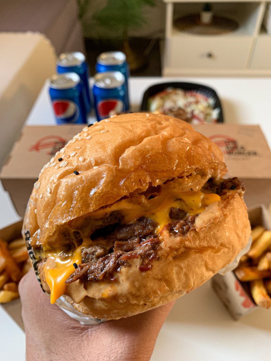 من مطاعم البرجر الجديدة بالرياض يقدمون خيارات متنوعة من برجر اللحم والدجاج ومقبلات وفرايز وسلطات حجم البرجر كبير وأسعارهم حلوة تبدأ من ١٦ ريال للبرجر أفضل الطلبات "أريا سيجنتشر" شريحتين لحم مع لحم بريسكت وجبن الخبز قطن واللحم ذايب وتتبيلته رهيبة 🍔
