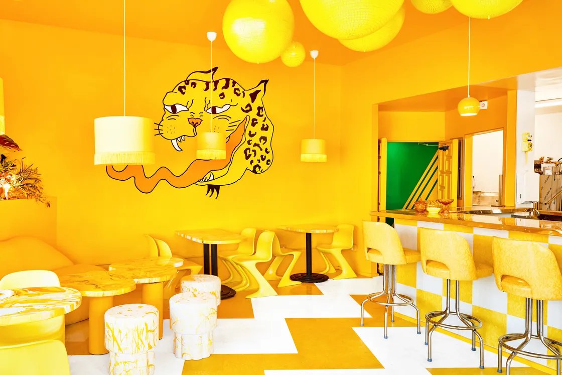 مطعم Shuggie’s Trash Pie في سان فرانسيسكو يقدم الفاكهة المكدومة وبيتزا سمك السلمون وحوصلات دجاج بافالو في مساحة ملونة بشكل متفجر