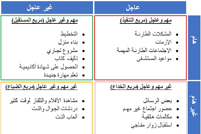 4. الأمور غير المهمة وغير المستعجلة